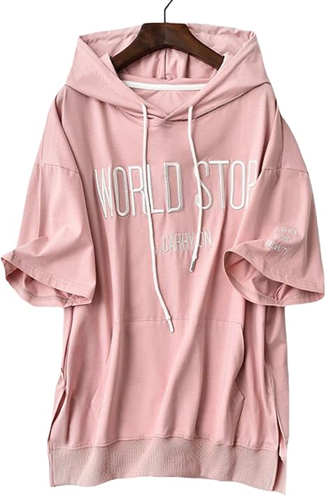 パーカー ビッグパーカー 大きめ パーカー フード付カットソー レディース 薄手 半袖 大きいサイズ オーバーサイズ ビッグ サイズ ロング丈 プルオーバー おしゃれ かわいい 原宿系 ファッション 韓国 ファッション ストリート 系 ヒップホップ Tops Tシャツ