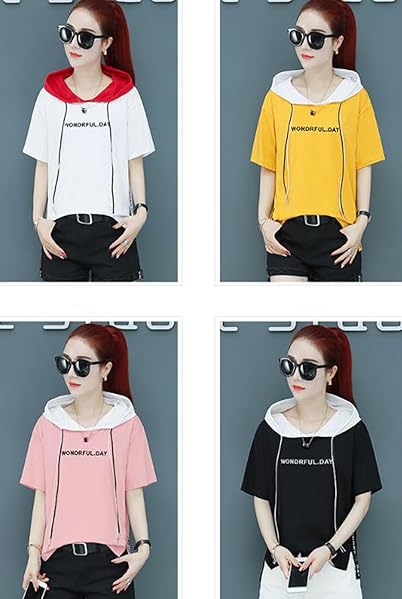 Amazon S Xiny Tシャツ レディース 半袖 五分袖 パーカー 綿 フード付き トップス ゆったり カジュアル スポーツ Tシャツ カットソー 通販