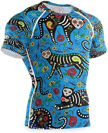 ジムtシャツ メンズ 猫柄 ねこ ストレッチ 半袖シャツ 加圧シャツ 細身 コンプレッション フィットネス ランニングウェア 速乾性 筋トレ おしゃれ 安い ボディビル トレーニングウェア 通気防臭 アンダーウェア スポーツウェア