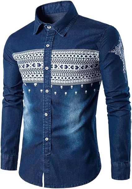 Amazon Co Jp メンズデニムシャツ 新しい秋ファッション男性用シャツロングスリーブトップスカウボーイメンズドレスシャツスリムメンズシャツ 色 濃紺 サイズ Xl ホーム キッチン