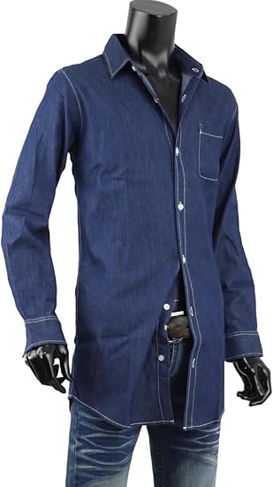 Amazon ロングシャツ シャツ ロング メンズ デニム ダンガリー デニムシャツ A280818 07 ネイビー L シャツ 通販