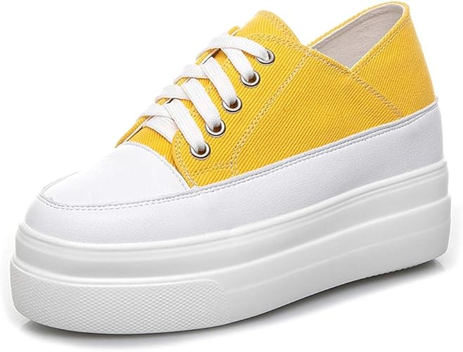 Amazon 厚底 スニーカー レディース 小さいサイズ カジュアルシューズ ローカット レースアップ 軽量 身長効果 黒 ブラック イエロー キャンバスシューズ 歩きやすい 疲れない インヒール おしゃれ 通学 防滑 歩きやすい レースアップ