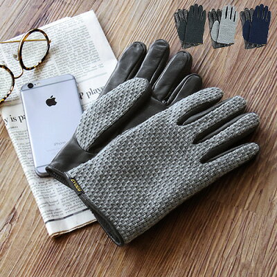 メンズ 手袋 グローブ スマホ対応 グレンンチェック 男性 紳士 冬 防寒 羊革 豚革 本革 スエード ニット メンズファッション 通販 スプートニクス
