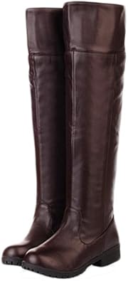 Amazon ファッション メーカ ブーツ レディース ロングブーツ ロング丈 ブーツ ローヒール 美脚 ブーツ 合皮 通学 美脚 Pu 太ヒール ハイヒール カジュアルシューズ ブラウン 黒 Fashion Maker ファッション メーカ ブーツ ブーティ