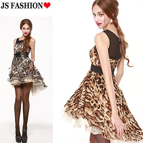 Amazon Co Jp 小悪魔 スタイル キュートな前後アシンメトリー丈たっぷりティアードフレア レオパード柄異素材切替フレアワンピース パーティードレス シースルー Js ファッション 楽ギフ 包装 P12jul15 ブラウン系 Sサイズ 服 ファッション小物
