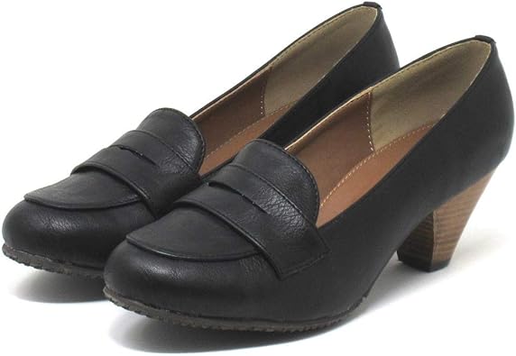 Amazon カンド 大きいサイズ 幅広 4e 太ヒール ローファー パンプス ブラック 26 5cm 95770tw265blk ローファー スリッポン