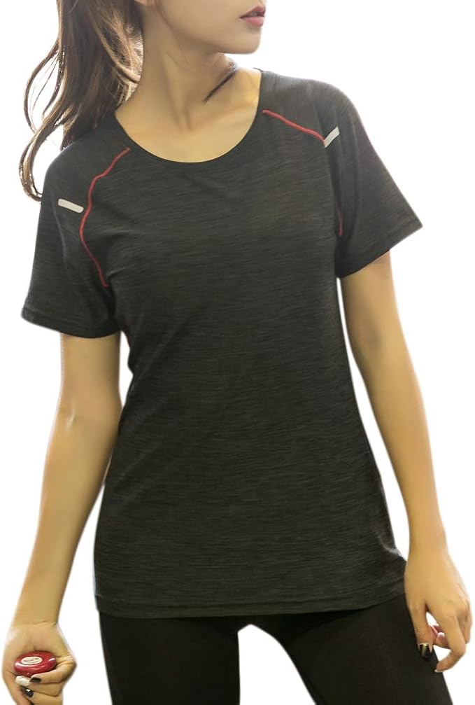 Amazon Elcele 大きいサイズ レディース ストレッチtシャツ 半袖 スポーツウェア Vネック ストレッチ ヨガウェア フィットネス トレーニング シャツ 通販