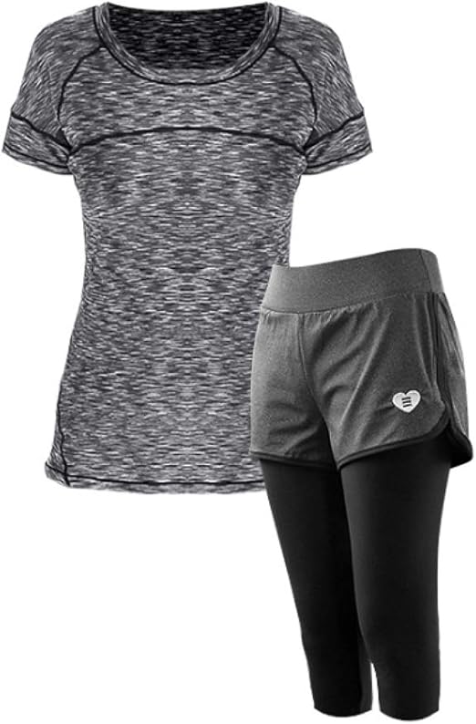 Amazon Elcele 大きいサイズ レディース セットアップ Tシャツ 半袖 ショートパンツ付きレギンス スポーツウェア Tシャツ カットソー 通販