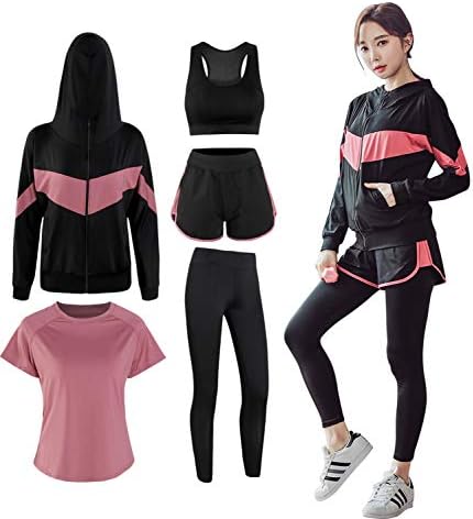 Amazon シーヤ seeya スポーツウェア レディース ヨガウェア トレーニングウェア ランニングウェア 上下 5点セット ジム フィットネス F206 フィットネス トレーニング ロングパンツ 通販