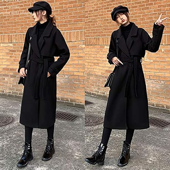 Amazon 冬コートレディース ウエストマーク ロングコート 冬服 レディース 韓国 ファッション レディース コート 黒コート 上品コート オフィスカジュアル 通勤 コート 韓国 黒 ロングコート 羽織コート ロングガウンコート コート ジャケット 通販