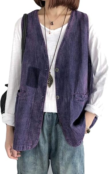 Amazon Yitongベスト レディース vネック カジュアル デニムベスト ゆったり ファッションレディース チョッキ ジレ 薄手 ダメージ加工 綿 コットン オーバーサイズ gジャン 袖なし可愛い 原宿風パープル ベスト 通販