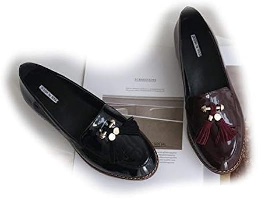 Amazon ローファー エナメル レディース タッセル ローヒール 黒 ブラック ワイン レッドオックスフォードシューズ おじ靴 レディースシューズ マニッシュ 通勤 通学 ノーブランド ローファー スリッポン
