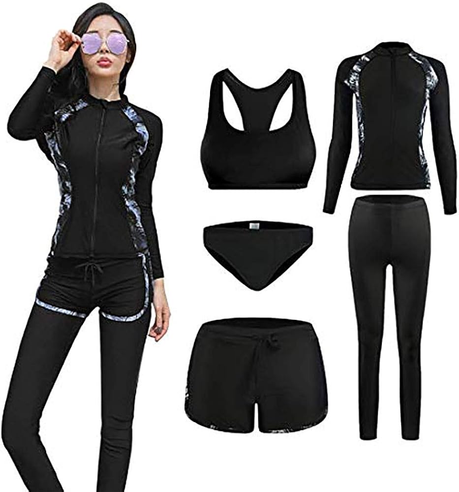 Amazon Co Jp Jomiss フィットネス 水着 ラッシュガード レディース 5点セット タンキニ レギンス 体型カバー 長袖 前開き セパレート スイミング パンツ ブラ 服 ファッション小物
