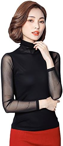Amazon Fere8890 社交ダンストップス Tシャツ インナー レディース ハイネック メッシュ レース 長袖 大きいサイズ 黒 シャツ ブラウス 通販