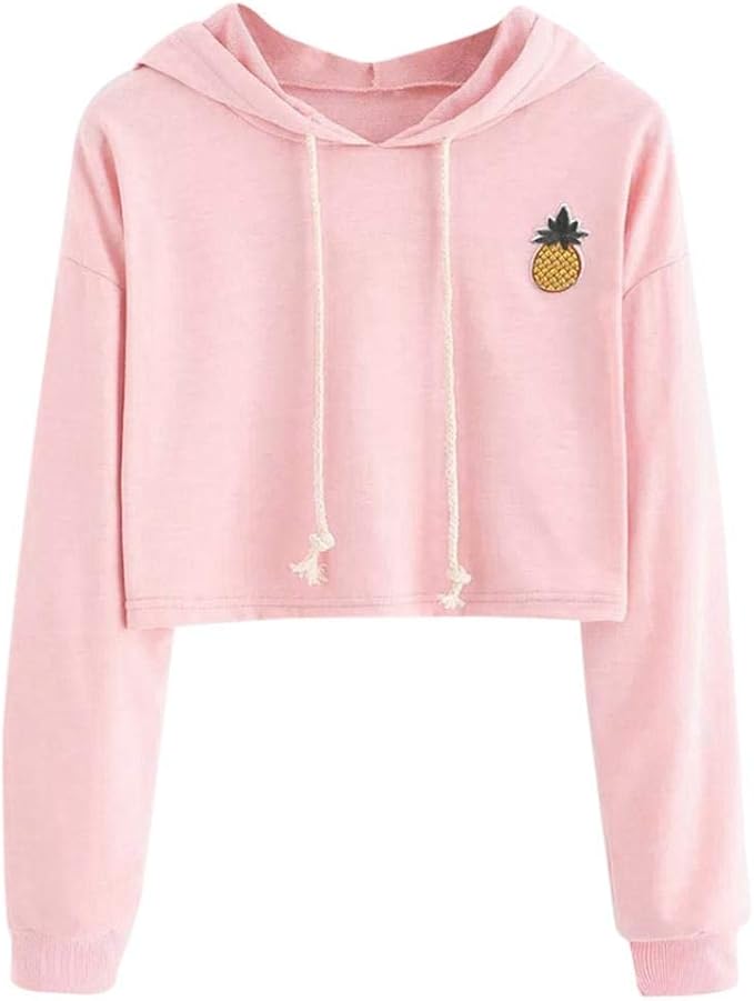 Amazon Lucaso 人気 トップス レディース パーカー フード付き ショート丈 パイナップル セクシー 薄地 長袖 可愛い オシャレ ゆったり カジュアル カットソー トレーナー プルオーバー 通勤 通学 旅行 普段着 トレーナー パーカー 通販
